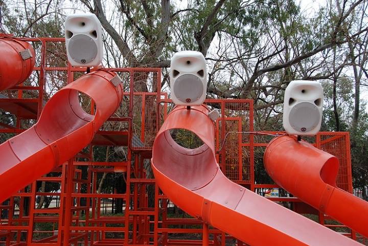 Con esta obra-instalación, el músico y artista multimedial Gabriel Gendin busca que grandes y chicos hagan música jugando. Mediante la idea de realizar “juegos-instrumentos” intervenidos por dispositivos tecnológicos, el artista puso a disposición sonidos compuestos y generados por él para que el público pueda jugar y “ejecutar” interactivamente con los juegos de la plaza. Dichos dispositivos están instalados estratégicamente en cada juego de modo tal que el movimiento natural que se produce con el juego es capturado por los sensores, pudiendo así generar música jugando.